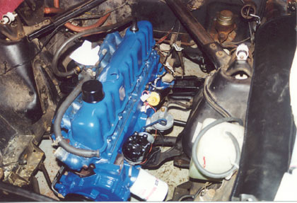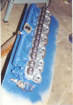 Well, the car had been running okay for the last year or two, but starting having a serious problem idiling. We have an automatic, so a smooth idle is more important than in a stick, as the engine and the transmission are always coupled so any surging or stumbling in the engine causes surging and lurching in the transmission. I first tried a new (rebuilt) carburetor, but that just made things worse. Engine compression was okay, and the idle vacuum was on the low side (17 psi), so there wasn't anything obvious wrong. I replaced the distributor cap/rotor and plugs (which seemed to foul every 2-3 days). The exhaust-port divider I bought from Clifford was loose again and rattling around driving me nuts, so this was the final straw and I pulled the head off. Turned out that 10 of the 12 valves were quite a bit undersized and had built up a good amount of gooey residue on the top-side of the valves. So, I threw a wad of money at the head and had NAPA put in new valves and valve guides. The machinist at NAPA talked me out of hardened seats (he said that once hardened ones are put in, there is nothing much you can do when they wear out, so you don't want to do that until the stock seats are beyond use/repair -- guess I'll trust the person who is suppose to know what is going on).