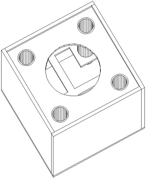 Hidden line rendering of the box, again upside down. You can see the brace through the driver hole.