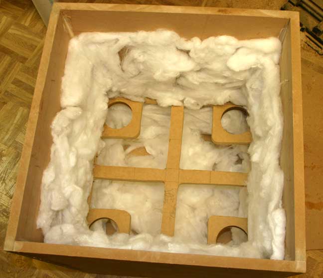 Most of the interior of the box is lined with Acousta-Suff polyfil.