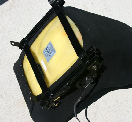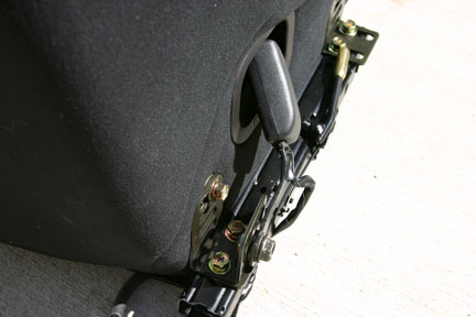 2) If you look back at the original pictures, the seat mounting frame was a 4-sided piece. I ended up cutting the cross-members out, which allowed the seat to move down about another 1/2". The picture of the seat upside down shows the modified bracket.