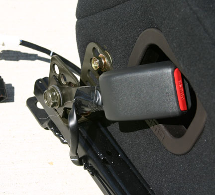 View of how the seat belt receptacle was intially mounted. This was modified later (see below).