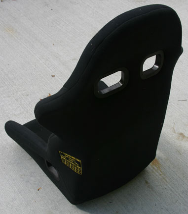 In the quest for more helmet clearance for track days, I have gone to an aftermarket seat. The seat I chose was the Momo Start 2007. This is one of the least expensive FIA homologated seats I could find (the only less expensive was a Sparco sprint seat). The Start 2007 is a side-mount seat (side-mount seats generally can be mounted lower than bottom-mount seats). The FIA homologation means that the seat can be safely mounted without needing to be attached to a roll bar (a roll bar generally prevents use of the back seat in the RX-8). The Momo seat is quite tight for my behind. This seat is recommended for up to a 36" waist -- I'm a 33" and am wedging myself down into the back of it. I don't know how a 36" person would possibly fit (unless those extra 3" were in the front!).