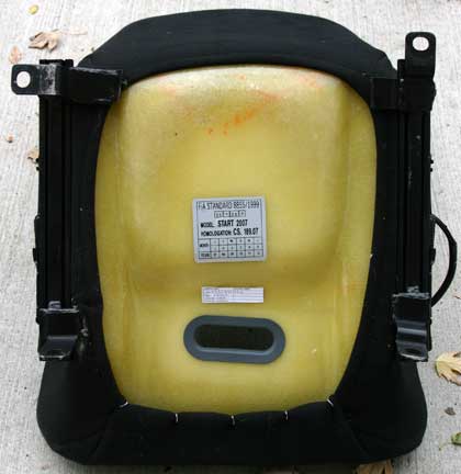 Momo Start 2007 seat, front view. Seat belt slots are plastic.